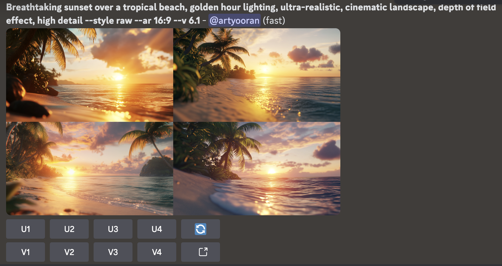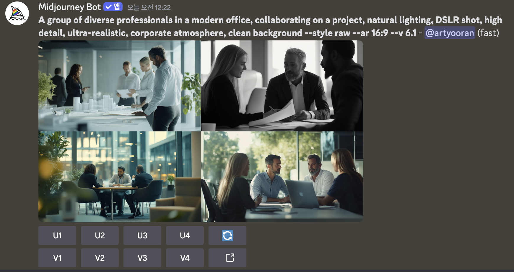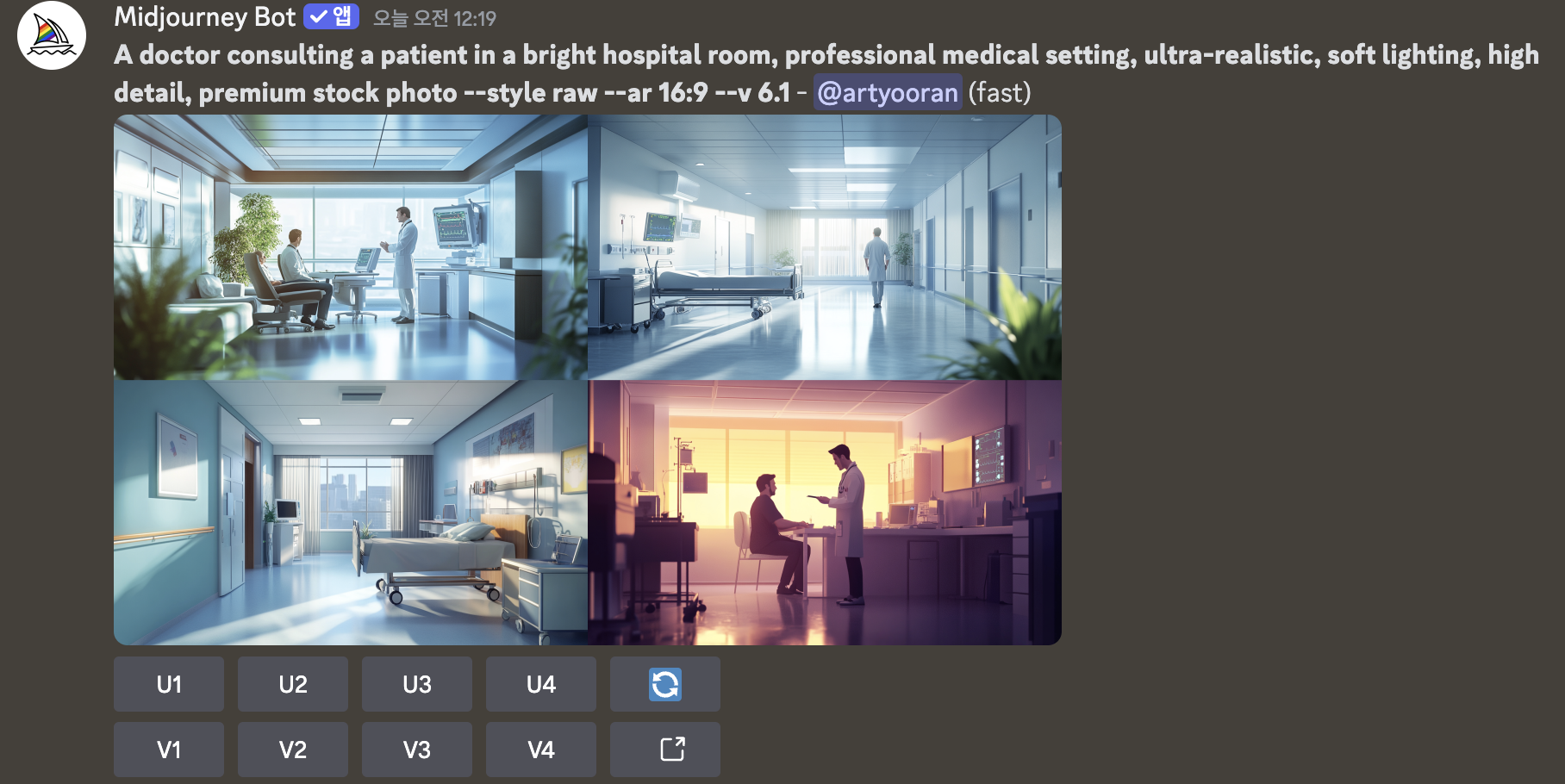 - 미드저니의 **업스케일 옵션(U1, U2, U3, U4)**을 활용하여 해상도 증가